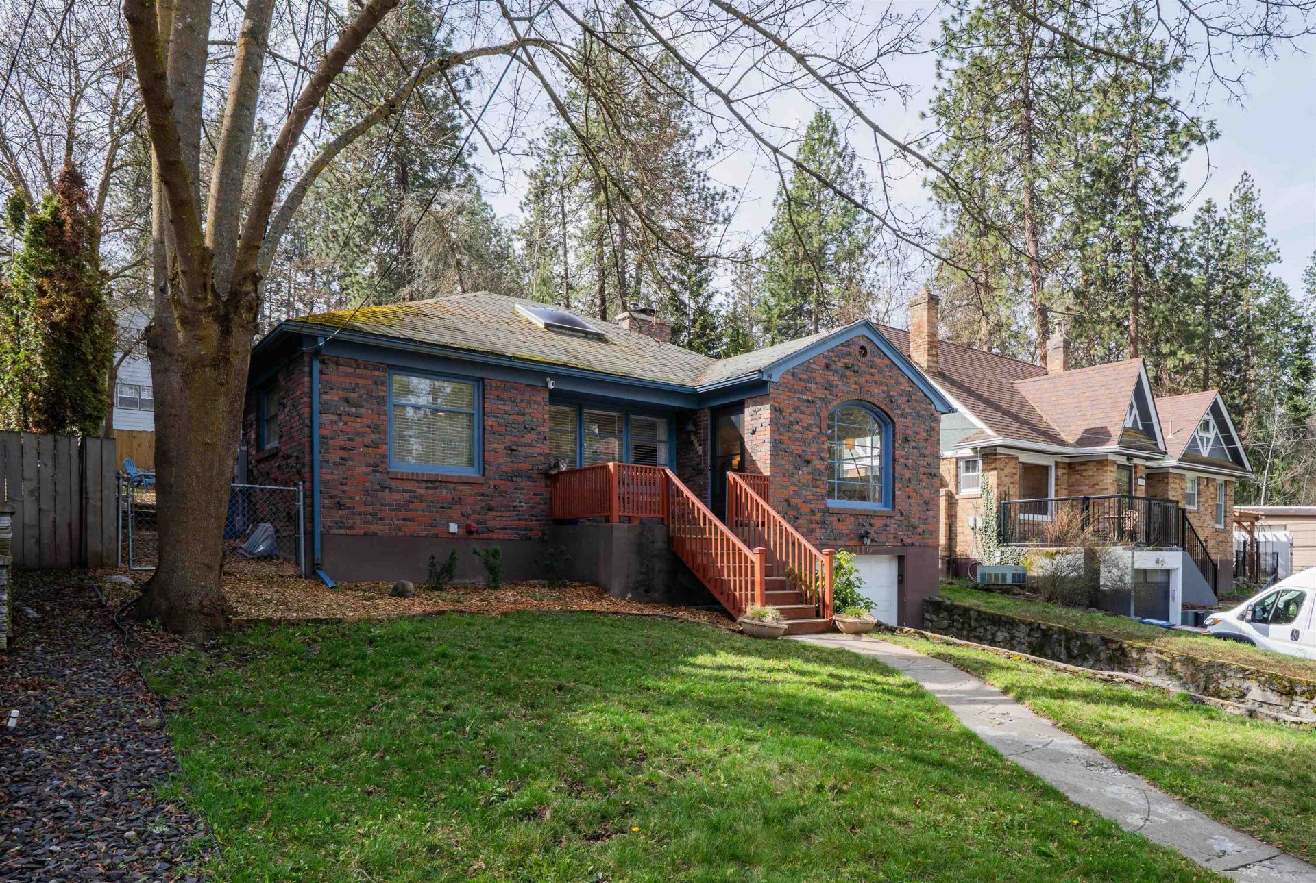 Welcome to your storybook bungalow in the heart of Rockwood! Nestled in one of Spokanes most sought-after neighborhoods, youre just moments from Manito Park, shopping, dining in the Perry District, and more. This charming brick home features an inviting front porch and opens to a warm living room with a cozy fireplace. Beautiful hardwood floors flow through the living & dining room, while the kitchen features tile flooring. Upstairs offers 2 bedrooms & 1 updated bath, blending classic charm with modern touches. Downstairs, enjoy a functional layout with fresh carpet, 2 additional bedrooms (1 non-egress), a bathroom, laundry area, and convenient access to the attached 1 car garage. Outside, the fully fenced yard offers a great opportunity to bring your vision to life and create your own outdoor retreat. Lovely views complete this Rockwood gem, ready to welcome you home!