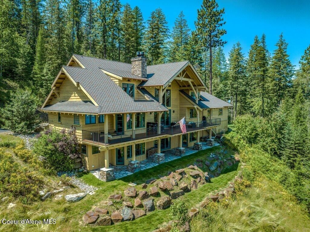 Perched high above Lake Pend Oreille in the exclusive, gated enclave of Stillwater Point, this extraordinary estate offers a rare combination of privacy, scale, and panoramic beauty. Set across two separate parcels totaling 5.6 acres, the property provides both an exceptional homesite and the flexibility of an additional adjoining lot--ideal for future expansion or simply preserving the surrounding open space. Spanning approximately 6,600 square feet of living space, the residence is designed with timeless mountain elegance and showcases a thoughtful three-level layout featuring 5 bedrooms and 6 bathrooms. The main floor is anchored by a luxurious primary suite and expansive living areas that seamlessly connect to outdoor decks overlooking the lake and mountains. The lower level is built for entertaining, featuring a spacious secondary living area, full bar, and wine cellar, along with two guest bedrooms. Upstairs, two additional bedrooms offer comfort and privacy, as well as a dedicated office--perfect for working remotely while taking in the surrounding natural beauty. Every detail reflects exceptional craftsmanship--from rich timber accents and natural stone finishes to curated lighting and high-end appliances in the chef's kitchen. Two striking stone fireplaces add warmth and architectural presence, enhancing the home's inviting atmosphere. Indoor and outdoor living blend effortlessly, with multiple spaces designed to gather, relax, and take in the sweeping views. As one of only a handful of homes within Stillwater Point, ownership includes access to a private sandy beach and dock on Lake Pend Oreille. The community also features a charming, recently renovated beach house complete with a bathroom--an ideal lakeside retreat for entertaining or relaxing by the water. Located just minutes from Bottle Bay, offering a marina and lakeside dining, as well as Sandpoint and Schweitzer Mountain Resort, this offering captures the essence of refined mountain living in one of North Idaho's most sought-after settings.