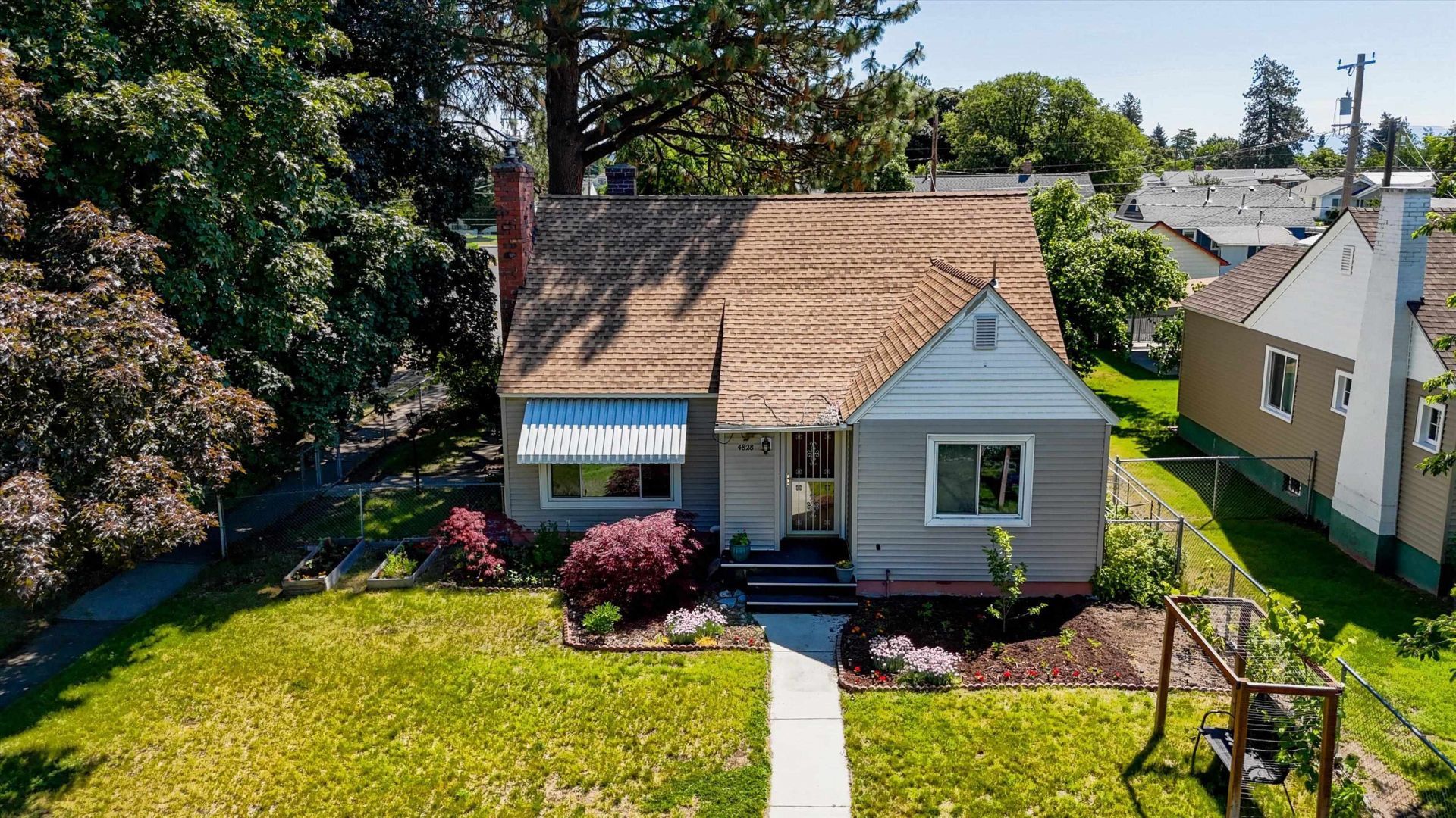 Charming 1947 Cape Cod?style cottage in a central Spokane location with classic character and thoughtful updates. Lower-level flex room features an in-law setup, offering flexibility for multi-generational living, potential rental income, a fourth bedroom, additional living space, or private suite. An additional three bedrooms, two baths, and approximately 2,500 total sq ft provide comfortable living space. Two fireplaces create a warm, inviting feel, while most windows have been updated for efficiency. Enjoy a beautifully landscaped yard with mature trees, sprinkler system, and a covered back deck perfect for relaxing or entertaining. Detached one-car garage with paved alley access adds convenience. Off street parking on a generous corner lot. Located on a bus route with easy access to Shadle Shopping Center, NorthTown Mall, the local library, and North Monroe amenities. Nearby favorites include Indaba Coffee and Maple Street Bistro, adding to the convenience and lifestyle appeal.