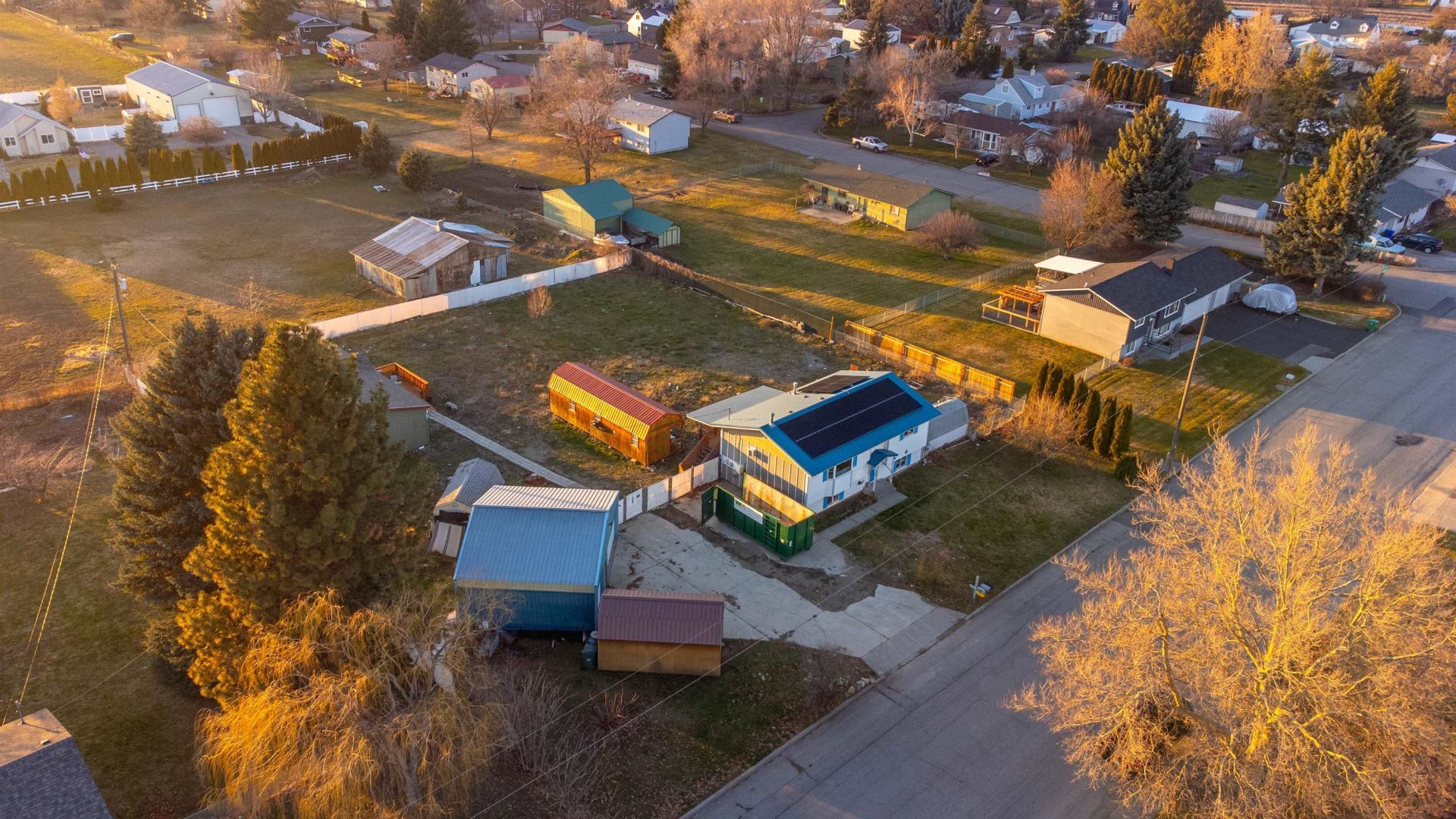 Set on an oversized lot, this unique property offers two dwellings. Flexibility for multi-generational living or rental income. The primary residence was updated throughout in 2023 and features two gas stoves - one on each level - a new tankless hot water heater, and newer high-efficiency solar panels that more than offset the electric bill. A Mother-in-Law Suite with outside entry is located downstairs. A large detached, three-car shop provides ample storage space. Additional outbuildings include two smaller storage sheds and a large storage building with window A/C, ideal for a workshop or creative space. The fully fenced backyard includes a gated entrance for added security. The second dwelling is a 2022 manufactured home offering open space living with a beautifully appointed kitchen. 1 mile from the WA, ID border. Quick walk to the Spokane River and the Centennial Trail.