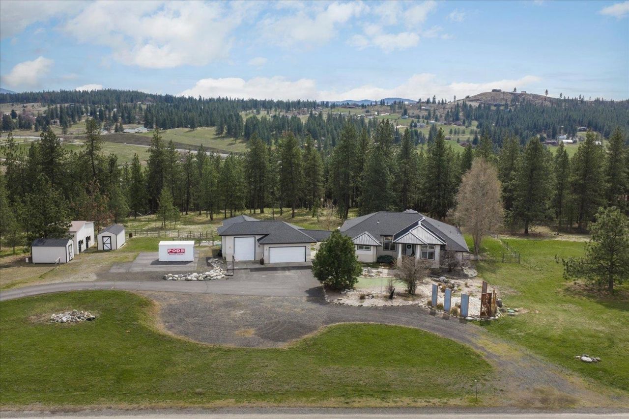 A rare opportunity to own close-in acreage offering both privacy and proximity to everyday amenities. Situated on 10 acres with approximately 7 acres fenced for horses, this nearly 4,300 sq ft home delivers the ideal blend of country living and convenience. A gated lane leads to a private retreat with expansive parking and an oversized 3 car garage. Inside, vaulted ceilings, custom flooring, and an open concept design create a warm yet elevated feel. Main floor primary suite, utilities, and a dedicated office support a seamless lifestyle. The lower level with separate entry and wet bar offers flexibility for guests or extended living. Outside, enjoy a custom flagstone fire pit, putting green and breathtaking sunset views that make this property truly special.